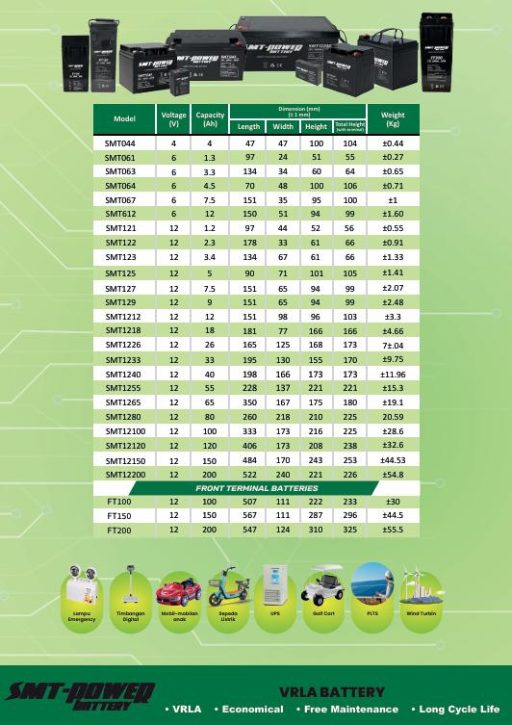 Tabel Spesifikasi SMT-POWER VRLA Battery